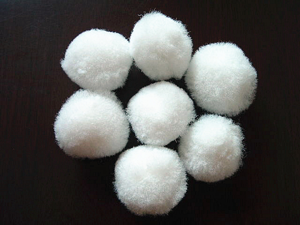 纖維球濾料是由纖維絲扎結(jié)而成的,它與傳統(tǒng)的鋼性顆粒濾料相比,彈性效果好,不上浮水面,空隙率大,耐酸堿等優(yōu)點;在過濾過程中,濾層空隙沿水流方向逐漸變小,比較符合理想